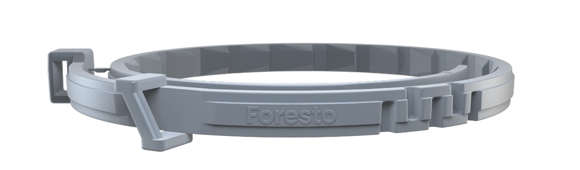 Dombornyomott Foresto® logó közvetlenül a nyakörvön, ami növeli a hamisítók elleni védelmet.